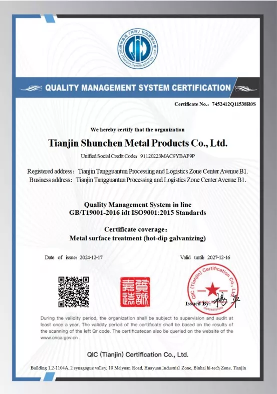 ຜູ້ຈັດການອາວຸໂສຂອງ Shunchen ມີປະສົບການຫຼາຍກວ່າ 20 ປີແລະເຕັກໂນໂລຢີໃນການຜະລິດ galvanizing ຮ້ອນ.