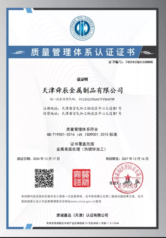 ພື້ນຜິວຂອງຜະລິດຕະພັນແມ່ນກ້ຽງແລະເປັນເອກະພາບ, ມີການຍຶດຫມັ້ນທີ່ເຂັ້ມແຂງຂອງຊັ້ນສັງກະສີ. ມັນບໍ່ຖືກທໍາລາຍໄດ້ງ່າຍຫຼືປອກເປືອກອອກໃນລະຫວ່າງການຂົນສົ່ງແລະການຕິດຕັ້ງ, ແລະບໍ່ຈໍາເປັນຕ້ອງມີການປິ່ນປົວຕ້ານການກັດກ່ອນເພີ່ມເຕີມ. ການນໍາໃຊ້ປະຈໍາວັນພຽງແຕ່ຕ້ອງການການທໍາຄວາມສະອາດງ່າຍດາຍເພື່ອກໍາຈັດຂີ້ຝຸ່ນແລະຮອຍເປື້ອນທີ່ເລື່ອນໄດ້, ໂດຍບໍ່ມີການບໍາລຸງຮັກສາເລື້ອຍໆ, ໂດຍສະເພາະແມ່ນເຫມາະສົມສໍາລັບກາງແຈ້ງ, ລະດັບຄວາມສູງ, ຄວາມຊຸ່ມຊື່ນແລະຄວາມຫຍຸ້ງຍາກໃນການຮັກສາສະຖານະການອື່ນໆ. ນອກຈາກນັ້ນ, ຂະບວນການຜະລິດຂອງມັນປະຕິບັດຕາມມາດຕະຖານເຫຼັກແຫ່ງຊາດຢ່າງເຂັ້ມງວດແລະມາດຕະຖານຂະບວນການ galvanizing ຮ້ອນ, ບໍ່ມີການປ່ອຍສານອັນຕະລາຍແລະການເຄືອບສັງກະສີທີ່ສອດຄ່ອງກັບສິ່ງແວດລ້ອມ, ເຊິ່ງສາມາດຮັບປະກັນຄວາມປອດໄພຂອງໂຄງການໄດ້ຢ່າງມີປະສິດທິພາບ.
