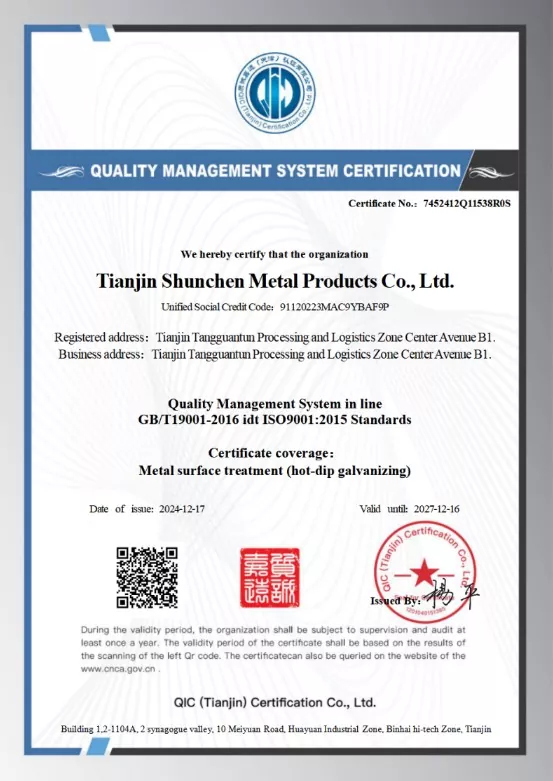 Tianjin Shunchen ມີປະສົບການການຜະລິດຫຼາຍປີ, ມີສາຍການຜະລິດທີ່ກວມເອົາລະບົບຕ່ອງໂສ້ອຸດສາຫະກໍາທັງຫມົດ. ບໍລິສັດຖື ISO 9000 ການຢັ້ງຢືນລະບົບການຄຸ້ມຄອງຄຸນນະພາບ, ການຢັ້ງຢືນສິນເຊື່ອ 3A, ແລະໃບຢັ້ງຢືນ EU CE, ວາງພື້ນຖານອັນແຂງສໍາລັບຄຸນນະພາບ. ໂດຍຜ່ານສິບສອງຂະບວນການທີ່ເຂັ້ມງວດແລະກົນໄກການກວດກາທີ່ສົມບູນແບບສາມຊັ້ນ, ບໍລິສັດໄດ້ບັນລຸສະຖິຕິທີ່ບໍ່ມີຄຸນນະພາບປະຈໍາປີແລະຄວາມປອດໄພຂອງອຸປະຕິເຫດ. ໃນໄລຍະສິບສອງປີທີ່ຜ່ານມາ, ບໍ່ມີການລະເມີດສັນຍາໃນການຈັດສົ່ງຄໍາສັ່ງ, ສະແດງໃຫ້ເຫັນເຖິງຄວາມຫນ້າເຊື່ອຖືໃນລະດັບສູງ. ຮູບແບບການຜະລິດແລະການຂາຍປະສົມປະສານ, ບວກກັບຄວາມສາມາດສາງ 10,000 ຕາແມັດ, ໃຫ້ລູກຄ້າມີການບໍລິການຈັດຊື້ທີ່ຢຸດດຽວ. ລະບົບສະຫນັບສະຫນູນຫລັງການຂາຍກວມເອົາຮອບວຽນທັງຫມົດ, ສະຫນອງການຕອບສະຫນອງ 24/7. ຄໍາສັ່ງສາມາດໄດ້ຮັບການຕິດຕາມໃນເວລາທີ່ແທ້ຈິງໂດຍຜ່ານສິບແປດຂໍ້, ຮັບປະກັນຂະບວນການໂປ່ງໃສແລະສາມາດຄວບຄຸມໄດ້.